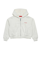Long-sleeved hooded sweatshirt. Embroidered MAX&Co. logo in contrasting colour on the front on the heart side. Front and back embroideries that give volume to the garment. Front welt pockets. Front zip closure. Ribbed cuffs and bottom construction.