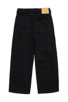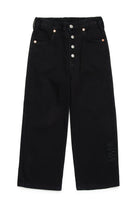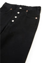 Five-pockets tapered fit jeans. Black denim with a clean look. Institutional logo embroidered in tone on the front. Exposed button closure. Iconic seam at back.
