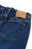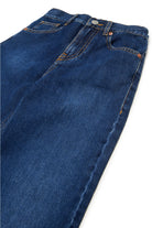 Five-pockets jeans with a flare fit. Medium blue denim with contrasting color gradients. Iconic seam at the back. Made of 100% cotton.