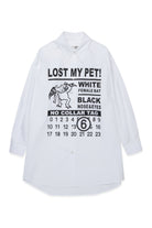 Poplin maxi shirt dress with "Lost My Pet" graphics, inspired by lost and found posters. An iconic garment that expresses the brand's DNA, ideal for casual original looks.