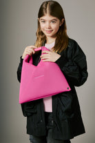 Japanese Bag bag in Mini mesh. Featuring a triangular silhouette and the presence of buttons at the edges that allow the bag to change shape by folding it in different ways, a clear reference to the aesthetic code of the French Maison. The sleeves feature a leather part branded with a numerical logo. It is MM6's most emblematic accessory, taken from the adult collection.
