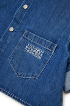 Light blue denim shirt. Short turn-up sleeves. Numeric logo embroidered in contrasting color on the breast pocket. Button closure. Iconic seam at back. Made of 100% cotton.