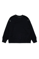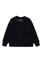 Long-sleeved fleece pullover embellished with hand-applied glossy plucking on crew-neck and armholes. A handcrafted detail that gives the garment an original and sophisticated look.