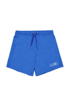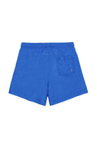 Nylon boxer costume. Short length. Drawstring waist. Numeric logo in contrasting color on front and back. Mesh inner briefs. Front welt pockets. Back pocket. Iconic seam at back.