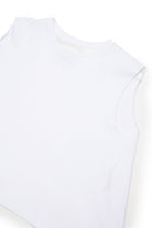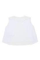 Sleeveless T-shirt with logo, made of 100% cotton. The design features a distinctive triangular opening at the back.
