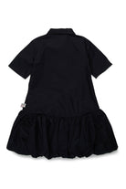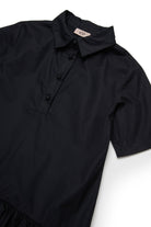 Short dress with logo and wide ruffle. The design features a classic collar and partial button placket, and is made from lightweight cotton poplin.