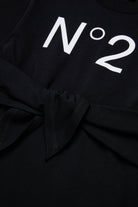 Short dress with printed logo and knotted waist detail, featuring a casual and contemporary design.