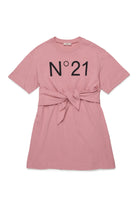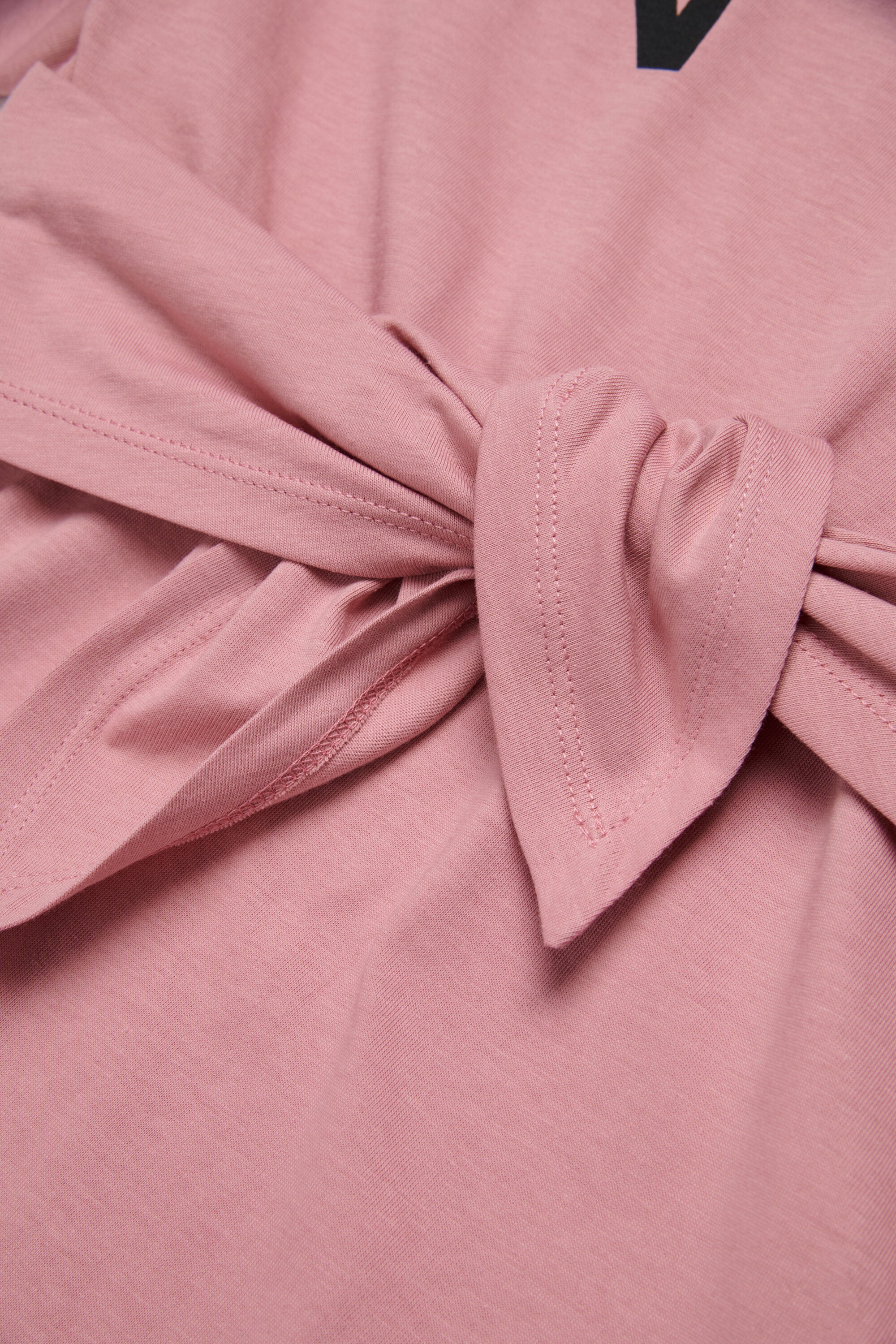 Short dress with printed logo and knotted waist detail, featuring a casual and contemporary design.